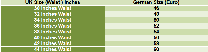 UK Size (Waist ) Inches